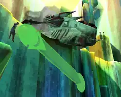 After Skywalker and Tano are able to track the Nightsisters as they escaped the Sedawan to the planet Rodia, the Council sends two Jedi and some clone troopers to the planet and are promptly impeded by a shield that the former are able to sneak into and work on to weaken, swimming through underwater passages and battling a Kwazel Maw along the way. They eventually go underground, riding a high-speed train of sorts and battling Nightsisters along the way. Just as the clones manage to disable the shield, the Jedi find Nightsister Yansu Grjak tapping into the power of a large kyber crystal in a cavern deep into the planet and kill her in battle.