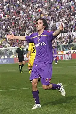 On 10 May 2008, Serie A club Fiorentina signed him for a fee of approx. €10.8 million.[20][21] He scored his first goal for La Viola in the league match against Atalanta from the penalty spot on 5 April 2009.[22]