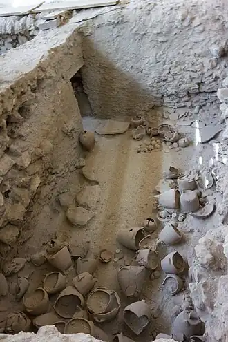 Contemporaneously with Haskell's theoretical work and the British Museum's neutron activation studies, excavations were being conducted at Kommos on the southern coast of Crete by the University of Toronto, 15 years of excavation in all, ending in 1995, which turned up thousands pieces of what looked like export and import pottery.[12] The excavators and theorists of this effort adopted Haskell's term of "transport jars". Kommos was an LBA (Late Bronze Age) port networking extensively with Egypt and the Levant.