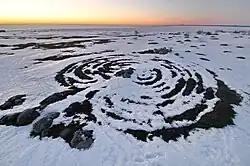 The stone labyrinths of Bolshoi Zayatsky Island are a group of 13 or 14 labyrinths on Bolshoy Zayatsky Island, one of the Solovetsky Islands in Arkhangelsk Oblast, Russia. Lacking standard archaeological study, a research group from Saint Petersburg theorize that the labyrinths are about 2500 years old, according to their orientation, their supposed ritual use, and changes in the direction of the zenith on the solstice throughout history.[1] Most researchers doubt that they are that old; the vast majority of labyrinths in this area date at the earliest to the Middle Ages.[2]