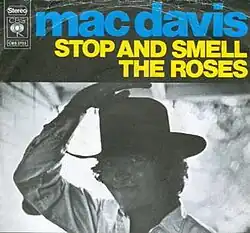 Released as a single from his album of the same name, the song "Stop and Smell the Roses" became Davis' second top 10 hit on the U.S. pop chart, where it peaked at No. 9 in the fall of 1974. The song remained in the Top 40 for ten weeks.[1] On the U.S. easy listening chart, "Stop and Smell the Roses" became the singer's second number-one hit, following "Baby, Don't Get Hooked on Me".[2] On the U.S. country music chart, where Davis has enjoyed considerable success, the song reached No. 40.[2] Also that year, Henson Cargill took a rendition to No. 29 on the same chart.