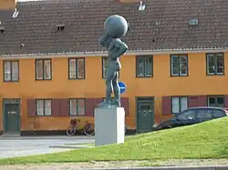 A small triangular greenspace sponsored by M. Goldschmidt Holding was created in front of the company's head office on the corner of Grønningen and Store Kongensgade. It includes a bronze statue of the titan Atlas which was originally commissioned by Carl Jacobsen from the sculptor Nicolai Schmidt in 1899. It has previously decorated the roof of Carlsberg's building in Copenhagen Freeport and later the Central Machine Building in the Carlsberg neighbourhood. The sculpture is used in M. Goldschmidt's logo.[11]