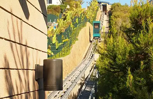 Strand Beach Elevator is an inclined elevator in Dana Point, California that transports people between a beach area and a hilltop, making the beach accessible. A developer agreed to construct this amenity for the city as part of an overall deal for a large real estate development. It was completed and opened in 2009, and ownership and operation was turned over to the city.[1][2][3][4]