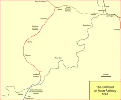 The Stratford on Avon Railway[note 1] was a branch railway line opened in 1860, to connect the town of Stratford-upon-Avon to the Great Western Railway main line at Hatton, in England. It was worked by the GWR. In 1861 it was connected through Stratford to a branch line from Honeybourne, and this later enabled the development of a through mineral traffic. The company was absorbed by the GWR in 1883.