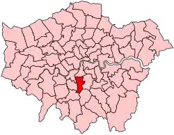 Streatham was a long constituency comprising the south-west portion of the London Borough of Lambeth.[5] The town of Streatham constituted the four wards in the southern half of the constituency. At its north-western tip the seat included half of Clapham Common; the north-east takes in part of Brixton which was shared with neighbouring Vauxhall and Dulwich and West Norwood.