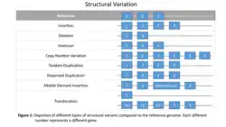 - ^ a b c d e f g h i j k l m n o Feuk, L.; Carson, A.R.; Schere, S.W. (2006). "Structural variation in the human genome". Nature Reviews Genetics. 7 (2): 85–97. doi:10.1038/nrg1767. PMID 16418744. S2CID 17255998.