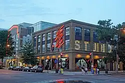 Exterior of the Studio Theatre in Washington DC, taken from the southwest corner of 14th & P streets NW during evening twilight