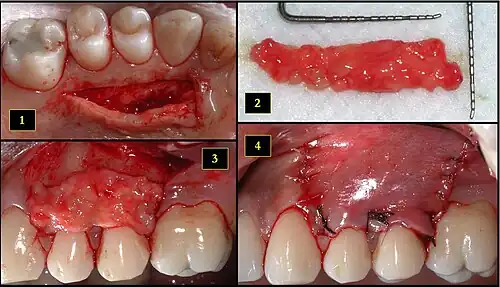 3. ^ a b Langer, B.; Calagna, L. (1980). "The subepithelial connective tissue graft". J Prosthet Dent. 44 (4): 363–367. doi:10.1016/0022-3913(80)90090-6. PMID 6931898.
