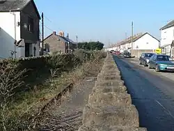 ![]() Sudbrook showing the line of the old branch railway which divides the village | |
