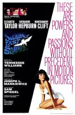 Suddenly, Last Summer is a 1959 Southern Gothic psychological drama mystery film based on the 1958 play of the same name by Tennessee Williams. The film stars Katharine Hepburn, Elizabeth Taylor and Montgomery Clift with Albert Dekker, Mercedes McCambridge, and Gary Raymond. It was directed by Joseph L. Mankiewicz and produced by Sam Spiegel from a screenplay by Gore Vidal and Williams with cinematography by Jack Hildyard and production design by Oliver Messel. The musical score was composed by Buxton Orr, using themes by Malcolm Arnold.