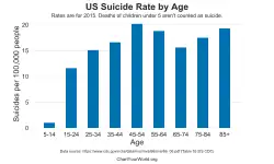 Crude suicide rate in the United States by age, 1981–2016[32]