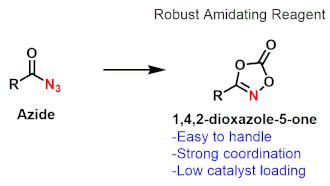 In 2016, Chang's group discovered new nitrogen sources.[19] Their new nitrene precursor, 1,4,2-dioxazol-5-one, is more convenient to prepare, store and use compared to azides. Moreover, it has a strong affinity to the rhodium or Iridium metal center, and thus gives excellent amidation efficiency.[20] They later published selective formation of gamma-lactams via C-H amidation[21][22] with this type of nucleophile.
