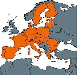 Eleven European countries have contributed data to the 2004 SHARE baseline study. They constitute a balanced representation of the various regions in Europe, ranging from Scandinavia (Denmark and Sweden) through Central Europe (Austria, France, Germany, Switzerland, Belgium, and the Netherlands) to the Mediterranean (Spain, Italy and Greece). Israel joined the SHARE framework in late 2004, being the first country in the Middle East to initiate a systematic study of its aging population. The SHARE main questionnaire consisted of 20 modules on health, socio-economics and social networks.[11] All data were collected by face-to-face, computer-aided personal interviews (CAPI), supplemented by a self-completion paper and pencil questionnaire.[12]