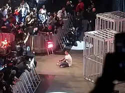 In the final segment on Raw, CM Punk addressed his return to WWE, claiming that he was a changed man and that he had to leave back in 2014. Punk then stated that it was time to come back to WWE and show that he truly was the "best in the world". He also thanked the WWE fans for never forgetting him and continuously chanting his name over the years.[36] After appearing on the December 8 episode of SmackDown and at NXT Deadline on December 9 and talking with each brand's respective general manager, Punk made the decision to sign with Raw on the December 11 episode of Raw. He was subsequently confronted by Seth "Freakin" Rollins, who voiced his disdain for Punk. Punk then officially announced his entry into the 2024 Royal Rumble, stating that after he won, he may challenge Rollins for the World Heavyweight Championship at WrestleMania XL.[39]