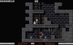 The player also fights bosses that are blocking the current path in order to progress further. Players can also collect letters spelling bonus and extra, which grants points and an extra life respectively. All of the actions in the game are performed different depending on the version, with one button and a joystick in the home computer versions, while the d-pad and two buttons are used in the GX4000 version. Losing a life gives Hiro a brief period of invincibility but once all lives are lost in the playthrough, the game is over, forcing players to restart from the beginning.