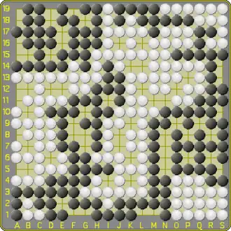 In the endgame, when growth potential is reduced, opportunities arise to cut off the opponent's groups or connect the player's own groups (to eliminate group penalties at the end of the game.) Additionally, during the final turns, it is possible to attempt to intentionally keep small empty areas within one's territory; since players are forced to create a new group if they cannot grow, this can be a way to force the other player to make a worthless invasion group for which the per-group penalty will be larger than whatever score is gained by creating the group.[3][6][7]
