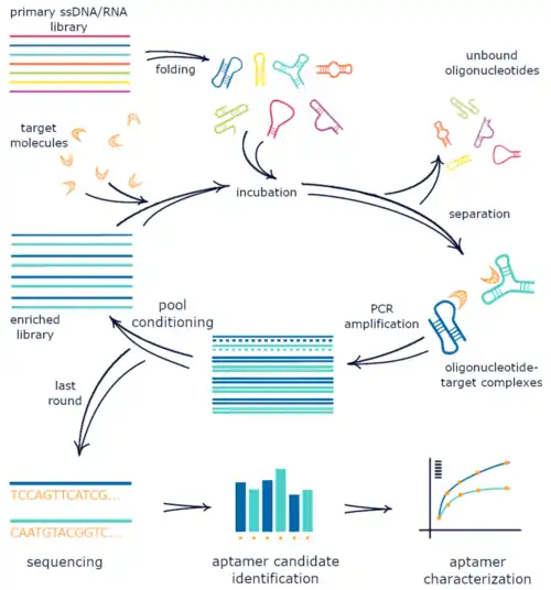 9. ^ a b c Wu YX, Kwon YJ (August 2016). "Aptamers: The "evolution" of SELEX". Methods. 106: 21–8. doi:10.1016/j.ymeth.2016.04.020. PMID 27109056.