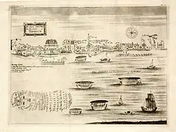 In terms of economy, Nguyễn Cochinchina largely relied on maritime trade, particularly trade with markets in Japan and China.[47] The Nguyễn and their great port of Hội An benefited from a confluence of events. Private trade by Chinese had been officially sanctioned by the Ming government in 1567. A flow of Latin American silver was penetrating the region, as were Europeans, especially Portuguese in the early phase. In the late sixteenth century, civil war was gradually resolving the disunity of Japan, and ships and traders from western Japan were taking to the sea. Mining technology there was producing more silver that was introduced into the trade. In the early seventeenth century, Dutch and English ships joined in the trade. The main point in Hội An's favor as a port in the late sixteenth and early seventeenth centuries was that the Ming government wanted nothing to do with Japanese ships after decades of East Asian piracy, raids, and unregulated trading activities along its east and southeast coast, and then the Japanese invasions of Korea in the 1590s. As a result, Japanese traders and, after Japan's reunification in 1600, official Red seal ships (J. shuinsen) authorized by the Tokugawa regime, came to Hội An for their trade in Chinese goods. The local Vietnamese regime encouraged and profited from this trade, providing the entrepôt where Japanese merchants could meet private Fujianese traders. This thriving commerce then drew other traders, including Southeast Asians and Europeans, to Hội An.[48] From the 1640s to 1700, trade in southern Vietnam brought an average 580,000 taels of revenue each year for the Nguyễn court.[49] A Portuguese mestizo, Joan da Cruz, offered his services to the Nguyễn Cochinchina and established a foundry in Huế to build guns in the European way.[50] Through the seventeenth century, the city of Hội An and the central coast of Vietnam thrived. Chinese ships went from Southeast Asian ports, especially Hội An, to Japan. The cargo loaded in Hội An was mainly Chinese and local Vietnamese silk and sugar that was traded for Japanese copper and silver, and many other products as well. The port brought wealth to the Nguyễn regime.[51] The Portuguese were welcomed to trade in Hội An, but not the Dutch.[52] The Portuguese at Hội An did all they could to prejudice the Southern Vietnamese rulers against the Dutch.[52]