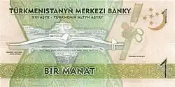Since 2017 the TürkmenÄlem 52°E appears on the reverse of the banknote of 1 Turkmen manat.