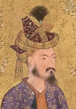 The Tāj-i 'Izzat ("Crown of Power and Glory") was a particular type of Mughal Empire headdress, characteristic of the court of Humayun (ruled 1530-1540 and 1555-1556), son and successor of Babur, and invented by Humayun himself. The headdress was created by Humayun in 1532 (939 AH), two years after his first accession as Mughal Emperor.[2] The Tāj-i 'Izzat was discontinued early in the reign of his son Akbar I.[3]