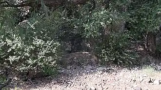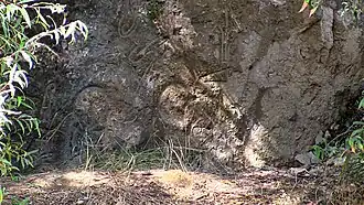 The north relief, Taşçı A, lies near the bank, about two metres above the water level, and now rises less than a metre above the soil which has built up around about. On the right hand side, it shows three robed figures facing right, who are covered by soil up to their hips. Their outlines are marked with depp grooves. The left figure is the best preserved - he is the only one where internal details can be made out. Ribbons run over their heads, a cloth hangs over their backs; from these details the figure appears to be female. Her eyes and chin are still visible, the nose and mouth area is broken. The two left figures each extend an arm; according to the 1939 sketch by Ignace Gelb, the right figure had the same posture, but this cannot be seen any more on account of heavy weathering. The central and right figures, who wear round caps, are only visible as silhouettes. All three figures are generally interpreted as priests.