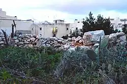 During the Muslim period the area at the tower is known to have at least been used as an Islamic cemetery, one of the early Islamic cemeteries in Malta. The reuse of former building by the Arabs was common as it facilitated effort from cutting rock. Some Punic and Roman building have been discovered to be reused in Malta during the Islamic caliphate, this could have possibly included the Ta' Cieda Tower. On site of the tower there were burial ground dating to the Arab period but these stone slabs and other evident Islamic symbol on the islands were eradicated after the expulsion of the Muslims from the lands. However several names of areas in San Gwann are still carrying Arab names.[16][17][18] Some of the Muslim burial stones are believed to be found at the saracenic burials in Rabat.[19] Some of the saracenic burial remains are still at present place at the Ta' Cieda Tower.[20][21][7][22][23][24][25][26][27][28]