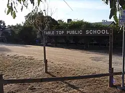 Table Top is an outer suburb of the city of Albury, New South Wales, located 16 kilometres (10 mi) north of Albury and 19 kilometres (12 mi) west of Bowna. At the 2021 census, Table Top had a population of 1,516.[1] The area used to be part of the Greater Hume Shire but was recently integrated into the City of Albury.