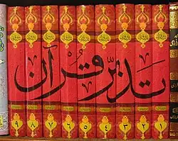 Tadabbur-i-Qur'an (Urdu: تدبر قرآن) is a exegeses (tafsir) of the Qur'an by Amin Ahsan Islahi based on the concept of thematic and structural coherence, which was originally inspired by Allama Hamiduddin Farahi. The tafsir is extended over nine volumes of six thousand pages. It was originally written in Urdu,[1] but now it is being translated in English. And it is translated in Tamil by Abdur Rahman Umari.