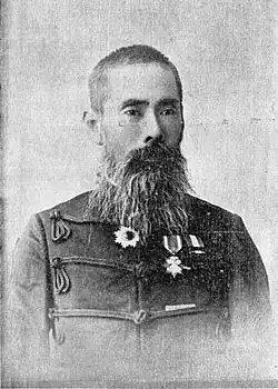 As a lieutenant colonel in the Imperial Japanese Army,[1] he was given command of the 18th Infantry Regiment on October 29, 1891. He was later promoted to colonel, and wounded in battle on March 4, 1895 during the First Sino-Japanese War.