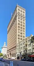 The history of high-rises in Oakland began with the completion of the nine-story Bank of America Building in 1907. A nine-story section was later added to the same building.[3] It remained the tallest building in the city until 1914, when the Oakland City Hall, at 320 feet (98 m), became the tallest.[4] At the time it was built, the City Hall was the first high-rise government building in the United States and the tallest building west of the Mississippi River.[5][6] The 390 feet (119 m) Kaiser Center surpassed the height of the City Hall in 1960, and was the tallest building for a decade.[7] In 1989, Ordway Building became the tallest building in the city.