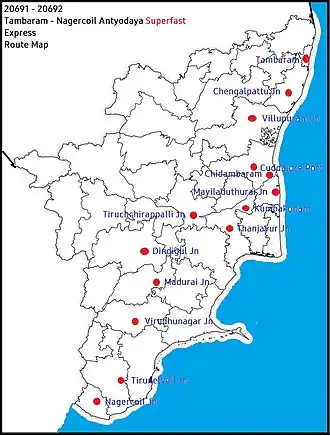 - ^ "20691/Tambaram–Nagercoil Antyodaya Superfast Express". India Rail Info.