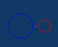- If the circles touch internally at one point () – have one point of internal tangency – then they have no internal bitangents and one external bitangent, namely the common tangent line, which has multiplicity two, as above.