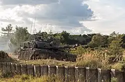 Tanks were used to spearhead the initial US invasion of Iraq in 2003. As of 2005, there were 1,100 M1 Abrams used by the United States Army in the course of the Iraq War, and they have proven to have an unexpectedly high level of vulnerability to roadside bombs.[60] A relatively new type of remotely detonated mine, the explosively formed penetrator has been used with some success against American armoured vehicles (particularly the Bradley fighting vehicle). However, with upgrades to their armour in the rear, M1s have proven invaluable in fighting insurgents in urban combat, particularly at the Battle of Fallujah, where the US Marines brought in two extra brigades.[61] Israeli Merkava tanks contain features that enable them to support infantry in low intensity conflicts (LIC) and counter-terrorism operations. Such features are the rear door and rear corridor, enabling the tank to carry infantry and embark safely; the IMI APAM-MP-T multi-purpose ammunition round, advanced C4IS systems and recently: TROPHY active protection system which protects the tank from shoulder-launched anti-tank weapons. During the Second Intifada further modifications were made, designated as "Merkava Mk. 3d Baz LIC".