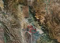 It is bounded on the east by the Roggeveld Mountains, on the west by the Cederberg, to the north by the Kouebokkeveld Mountains and on the south by the scattered foothills of the Koedoesberge and Klein Roggeveld Mountains, and the Tankwa River.[3] The park's headquarters are located at Roodewerf. Distances from the nearest towns to the park's headquarters are: Ceres (180 km), Sutherland (120 km), Calvinia (110 km) and Middelpos (52 km).[4]