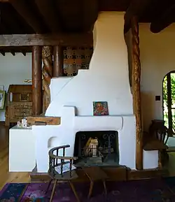 Like Lawrence, Russian artist Nicolai Fechin (1881–1955) suffered from tuberculosis and found Taos helpful for managing his health. In 1927, Fechin moved to Taos with his wife and daughter. For a time they lived with Luhan, but soon purchased an adobe home that was renovated into a beautiful, unusual home with Russian wood carvings. The Taos Art Museum is located inside the Fechin House.[16]
