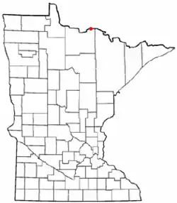 Map showing the pinpoint location of Ranier, Minnesota, the area Houska spent her childhood.
