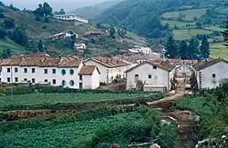 In 1929, Tarna received one of its notable facilities when the schools were built, financed by the Simon families. In the upper part of the town, a plinth of great proportions is terraced by means of a retaining wall in stone, still observable today, and on it, a building with a U-shaped plan is erected. This building suffered strong wear after the civil war when it was used to house the battalions of prisoners. It would be remade in 1957.[16] The original building had a ‘boys wing’ and a ‘girls wing’, an outdoor patio for the summer and interior hall that served as recreation in winter. The 1929 building and the 1957 building can be externally differentiated in the composition of the south façade, facing the town, with a succession of semicircular arches.