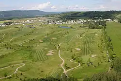 Despite its small population base and its proximity to a much larger urban centre Taylor has an ice arena, a curling rink, indoor swimming pool, irrigated baseball diamonds, a motocross track, and an 18-hole championship golf course. The District Ice Centre opened in 1993 and consists of an ice hockey rink and leisure skating rink, both of which are used for roller hockey, trade shows and conventions in the summer. The four sheet curling rink is used as a swimming pool in the summer. The District's newest facility, built in 2001, is a CND $1.2 million multi-purpose community hall and gymnasium, which now features a rehabilitation studio.[7] The 320-acre (1.3 km2), 18-hole Lone Wolf Golf Course opened in 1995 at a cost of $3.5 million and is managed by the District. Meandering around the course, by agricultural fields, and a community forest, is the 4.2 km ParticipACTION Trail. In the winter the golf course and its trails are used for cross-country skiing, snowshoeing and other winter activities.