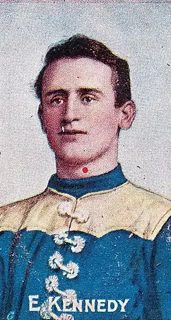 ![]() Cigarette card of Kennedy in 1908 | |||