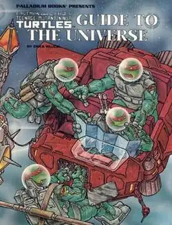 Palladium Books acquired the role-playing license for Teenage Mutant Ninja Turtles and published Teenage Mutant Ninja Turtles & Other Strangeness in 1985. They also published several supplements, the second being The Teenage Mutant Ninja Turtles Guide to the Universe in 1987, a 48-page book written by Erick Wujcik, with interior art by Kevin Eastman and cover art by Peter Laird.[2]