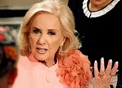 Being on the air since June 3, 1968, Almorzando con Mirtha Legrand (hosted by Mirtha Legrand, in the picture) has become Argentina's second longest-running show and one of the most popular since its premiere.[21]