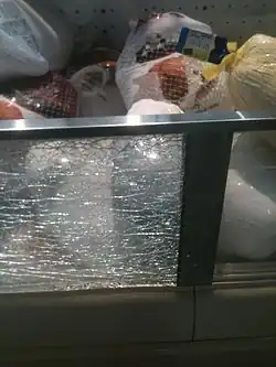 Spontaneous glass breakage is a phenomenon by which tempered glass may spontaneously break without any apparent reason. The most common causes are:[13][14]