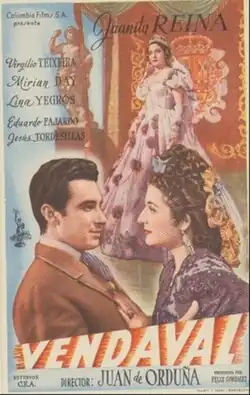 Tempest (Spanish: Vendaval) is a 1949 Spanish historical drama film directed by Juan de Orduña and starring Juanita Reina, Virgilio Teixeira and Miriam Di San Servolo. [1] [2] It was shot at the CEA Studios in Madrid.