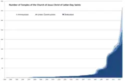 LDS temple construction reached an all-time high in 2000. As of March 2016, there are 150 operating temples.[6][7]