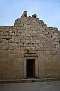 The Temple of Anahita is a large rectangular room in the shape of a cube in a depression 6 meters above the ground, each side of which is nearly 14 meters. It is built of carved stones without mortar, double-walled, and in the Achaemenid architectural style. These stones are connected to each other with iron fasteners. A staircase from the palace was also connected to this temple. The temple has no roof and the purpose was to bring the water of the Shapur River, which flows 250 meters away, into the temple, so that after flowing inside the temple, it would be discharged through a Qanat.[8][9]