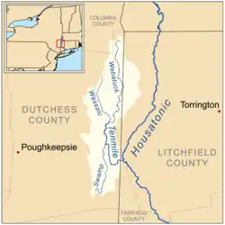 The Ten Mile River (Tenmile River on federal maps[1]) is a 15.4-mile-long (24.8 km)[2] river that flows through Dutchess County, New York, into westernmost Connecticut. The river is formed in the town of Amenia, New York, at the confluence of Webatuck Creek and Wassaic Creek. The Ten Mile River runs south through the town of Dover, New York before turning east and crossing into Connecticut, where it forms the boundary between the towns of Kent and Sherman for one-half mile before flowing into the Housatonic River. This is a popular whitewater paddling destination with mostly quickwater and a few whitewater areas reaching up to Class III.
