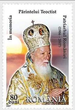 Teoctist (Romanian pronunciation: [te.okˈtist], born Toader Arăpașu, 7 February 1915 – 30 July 2007) was the Patriarch of the Romanian Orthodox Church from 1986 to 2007.