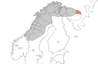 1. ^ a b Scheller, Elizabeth (2011). "The Sámi Language Situation in Russia" (PDF). In Grünthal, Riho; Kovács, Magdolna (eds.). Ethnic and Linguistic Context of Identity: Finno-Ugric Minorities. Helsinki, Finland: University of Helsinki, Department of Finnish, Finno-Ugrian and Scandinavian Studies. pp. 90–91. ISBN 978-952-5667-28-8. OCLC 755168782.
