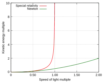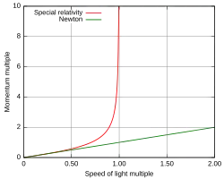Tests of relativistic energy and momentum are aimed at measuring the relativistic expressions for energy, momentum, and mass. According to special relativity, the properties of particles moving approximately at the speed of light significantly deviate from the predictions of Newtonian mechanics. For instance, the speed of light cannot be reached by massive particles.[1]