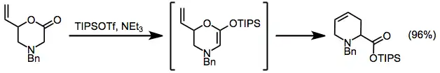 A modified Ireland-Claisen rearrangement leads to tetrahydropyridines via a silyl ketene acetal intermediate.[3]